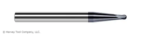 0.0930" (3/32) Cutter DIA x 0.0740" Length of Cut x 5° 1.6860" Taper Reach Carbide Ball End Mill for Medium Alloy Steels, 2 Flutes, AlTiN Nano Coated