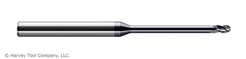 0.0150" (1/64) Cutter DIA x 0.0220" Length of Cut x 0.1870" (3/16) Reach Carbide Ball End Mill, 3 Flutes, AlTiN Coated